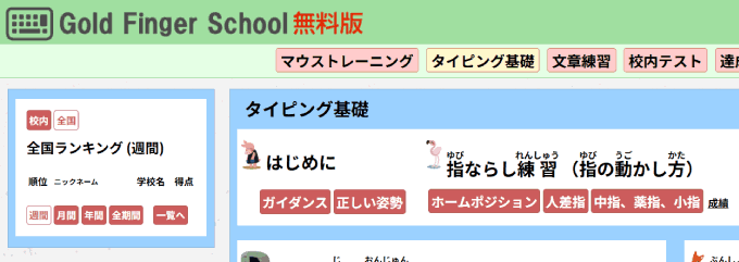 タイピング練習は7つに分かれています。 指ならし練習やローマ字50音順、変換練習、半角入力練習、文章練習など練習内容を紹介します。