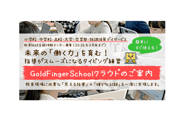 GoldFingerSchoolクラウドサンプル体験お申し込み受付開始校内テストを簡単に作成&実施できる学校向けタイピング…