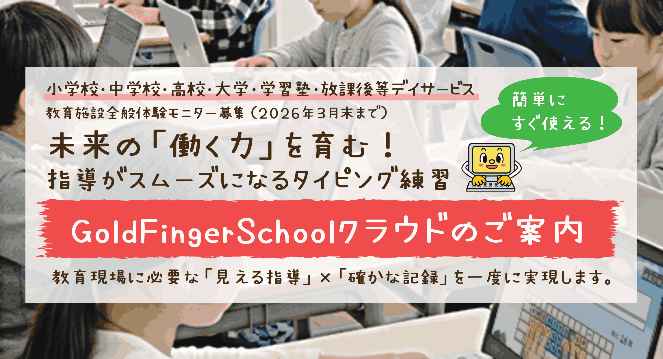 小学校・中学校・高校・大学・放課後等デイサービス・学習塾・民間スクール・教育施設全般に向け、GoldFingerSchoolクラウドのアップデートに活かすため、モニターの皆さまに本サービスをご体験いただき、最後にアンケートへのご回答をお願いしております。ご利用にあたっての主な内容は以下のとおりです。